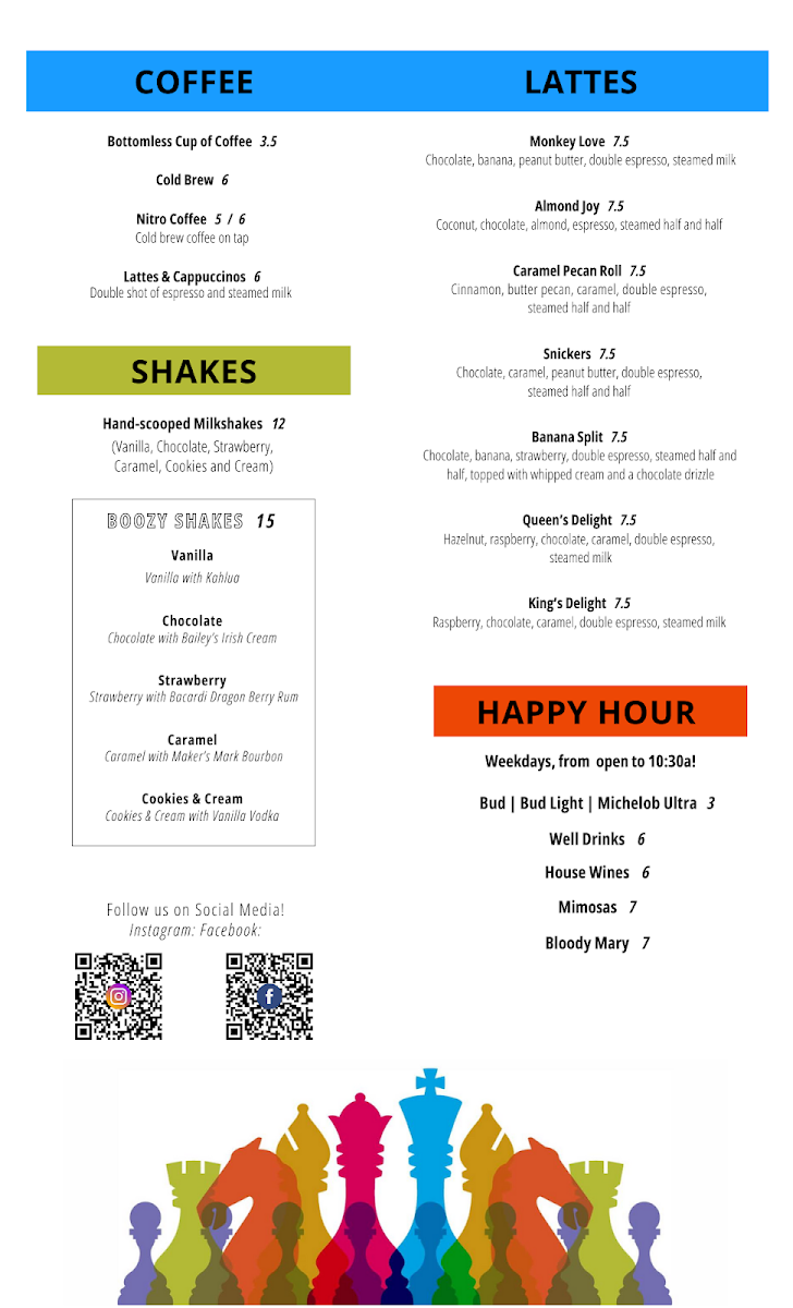 Golden hash browns topped with two eggs, burger patty, black bean chili, shredded cheddar, chives, & toast