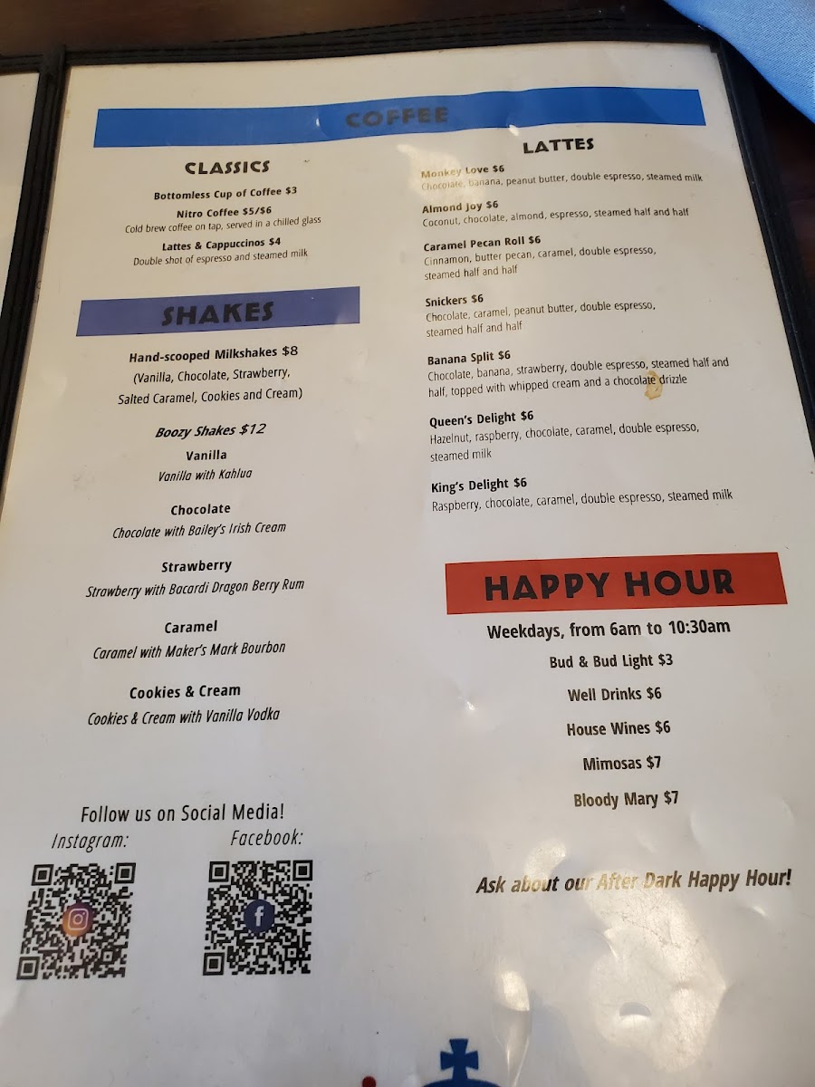 Maple cashew butter, bacon & banana between two pieces of French toast served with fries or hash browns